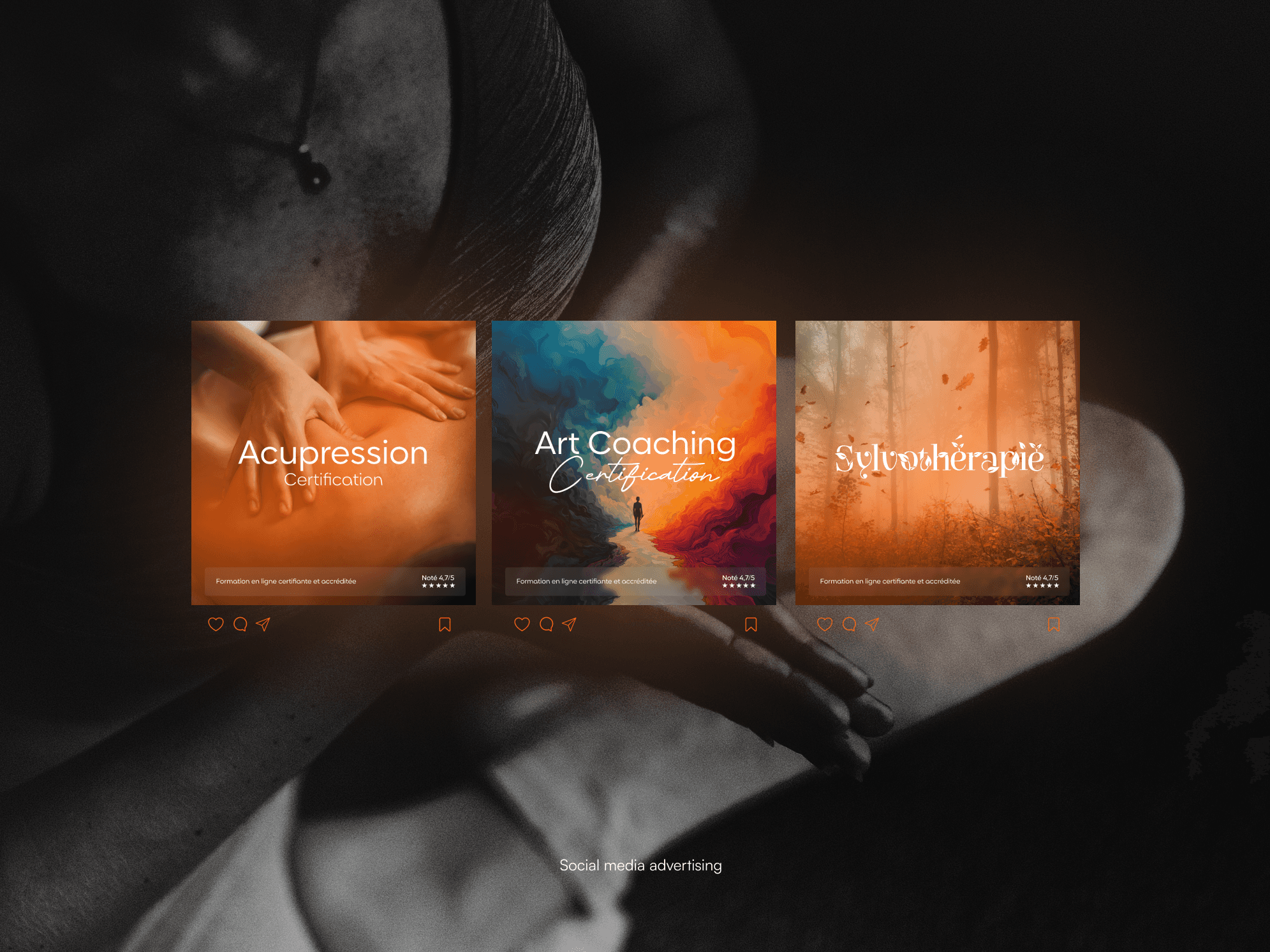 This volume captures and reflects the essence of the work carried out for my clients as part of the creative direction of social media advertising campaigns. In this advertising context, the expression of brand identity is directly aligned with performance objectives through the development of a structured visual system—tested and easily adaptable to the brand’s visual identity. The use of more or less complex shaders plays a key role in structuring the hierarchy of elements, enabling subtle light manipulation to guide the viewer’s eye and focus.